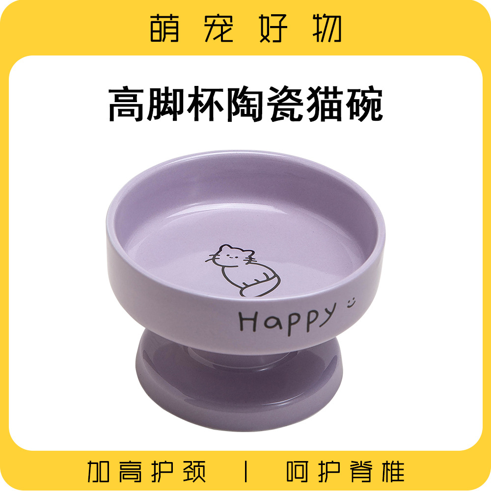 创高脚杯宠物碗猫碗猫咪食盆陶瓷狗狗喝水盆防打翻护颈椎