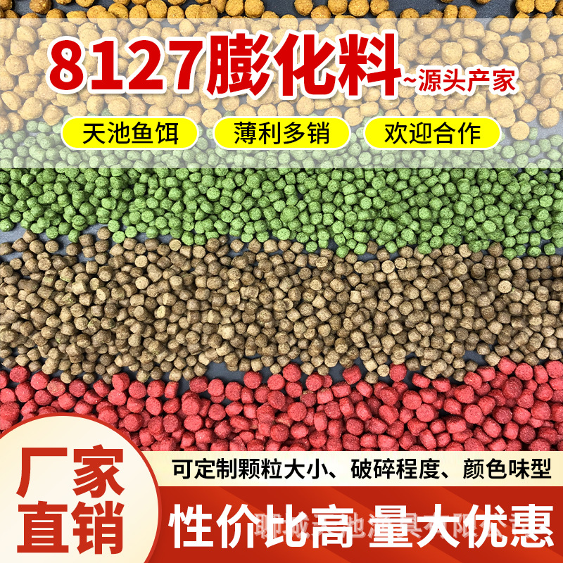 Dropshipping lintas batas untuk pelet kolam asli, pelet ekstrusi, bola merah, kuning, dan hijau, umpan ikan tepung kuning kecil, umpan granular yang dihancurkan, umpan curah.