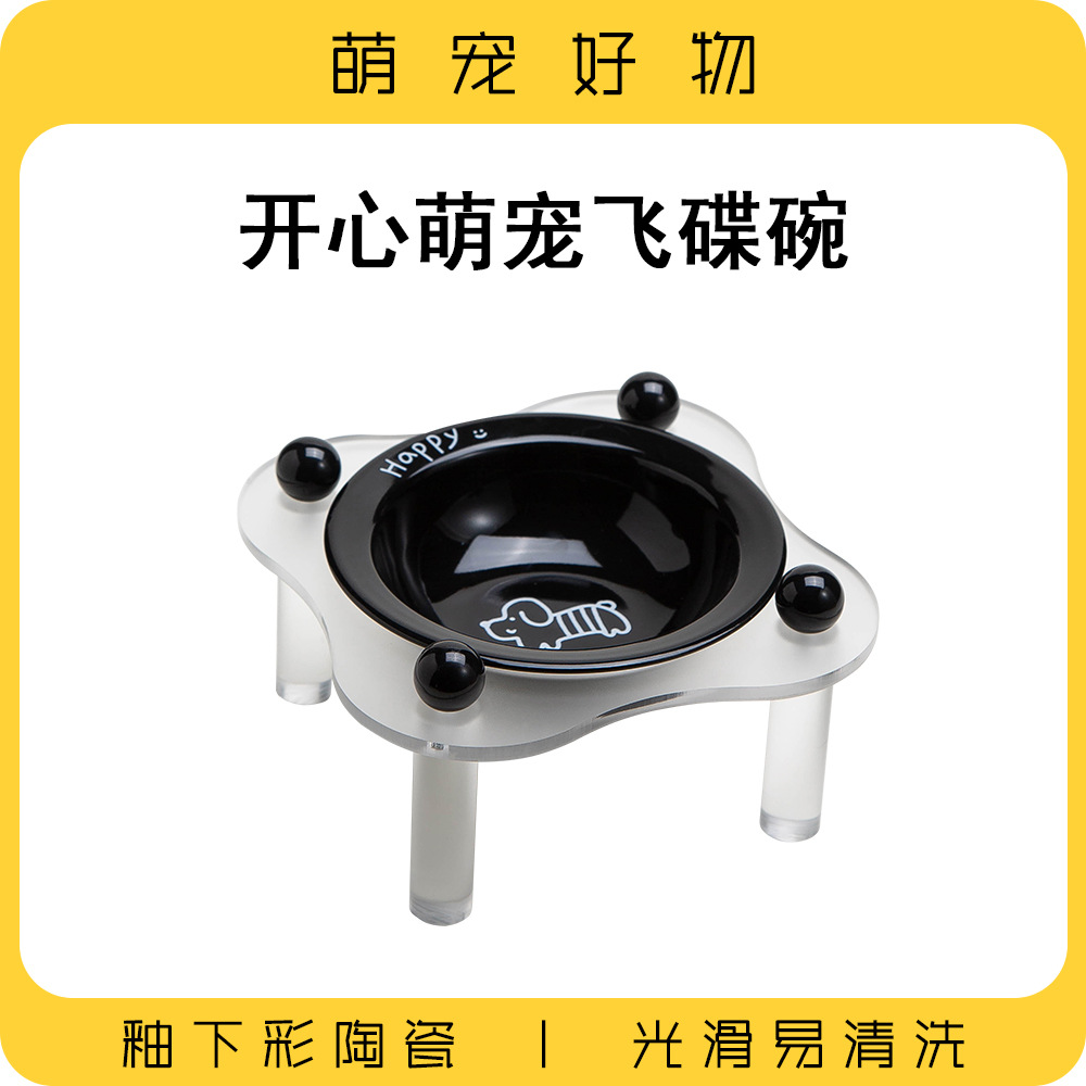 BD飞碟猫碗狗碗架护颈防打翻宠物碗猫咪罐头黑色喝水碗小吃粮食盆