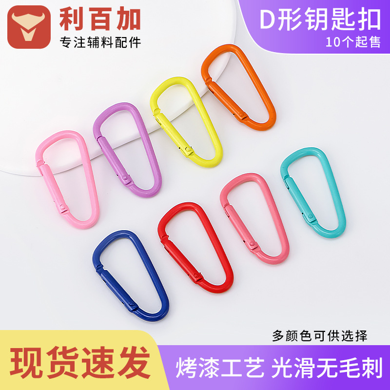 Produsen di stok cat paduan seng No. 5 d-berbentuk carabiner cat warna memanjat gesper luar ruangan gantungan kunci gesper