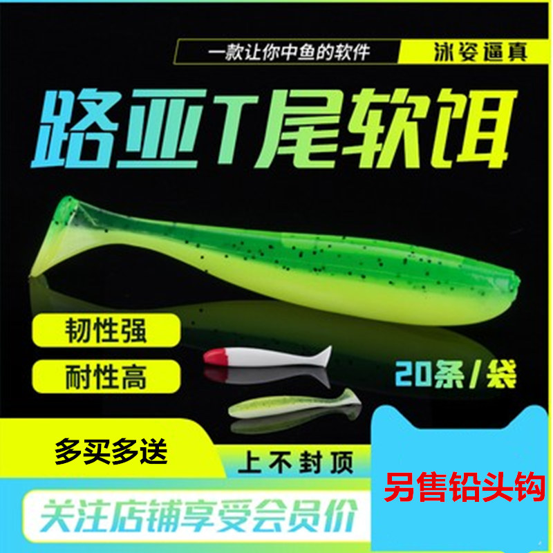 T-tail umpan ekor lembut kepala timah umpan ikan Mandarin umpan Luya cacing lembut dua warna monokrom ekor rolling
