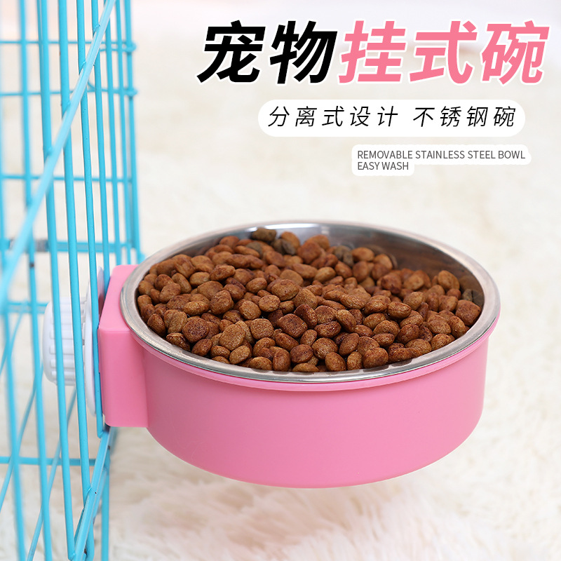 Pabrik langsung mangkuk hewan peliharaan baja nirkarat menggantung warna permen mangkuk makanan anjing kucing tetap persediaan hewan peliharaan grosir