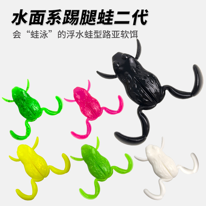 2代浮水面系路亚饵蹬腿蛙假饵高仿真亮水打黑软饵青蛙软鱼勺蛙踢