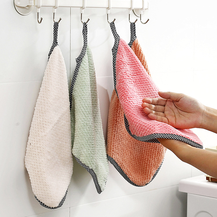 Handuk tebal pola nanas, lap penyerap dua sisi, handuk persegi kecil, handuk tangan gantung, kain piring dapur