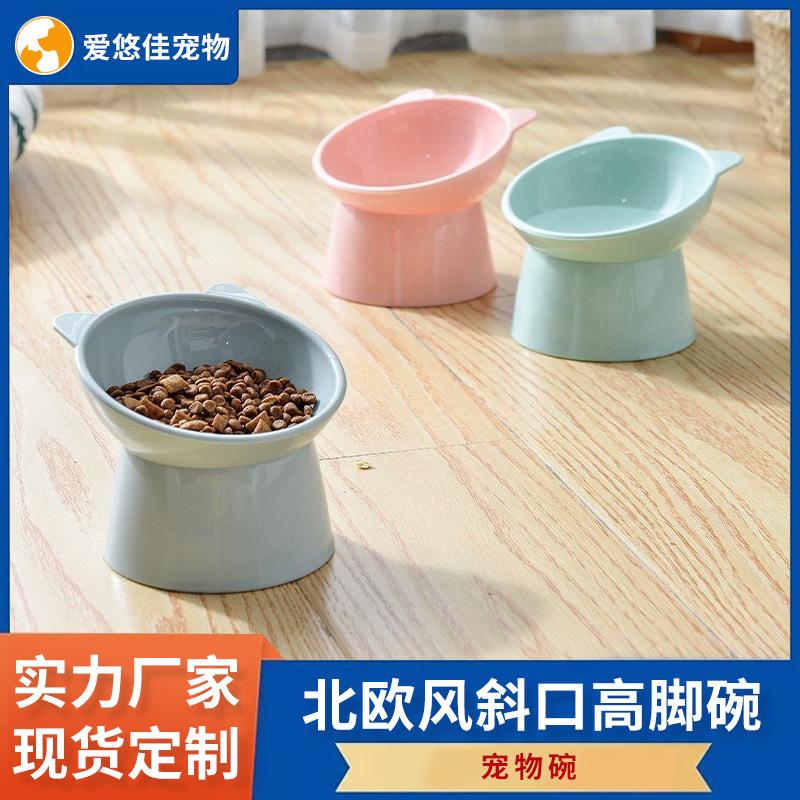 猫碗陶瓷宠物慢食碗猫食盆狗碗猫咪盘子猫粮碗饭碗高脚亚克力碗架