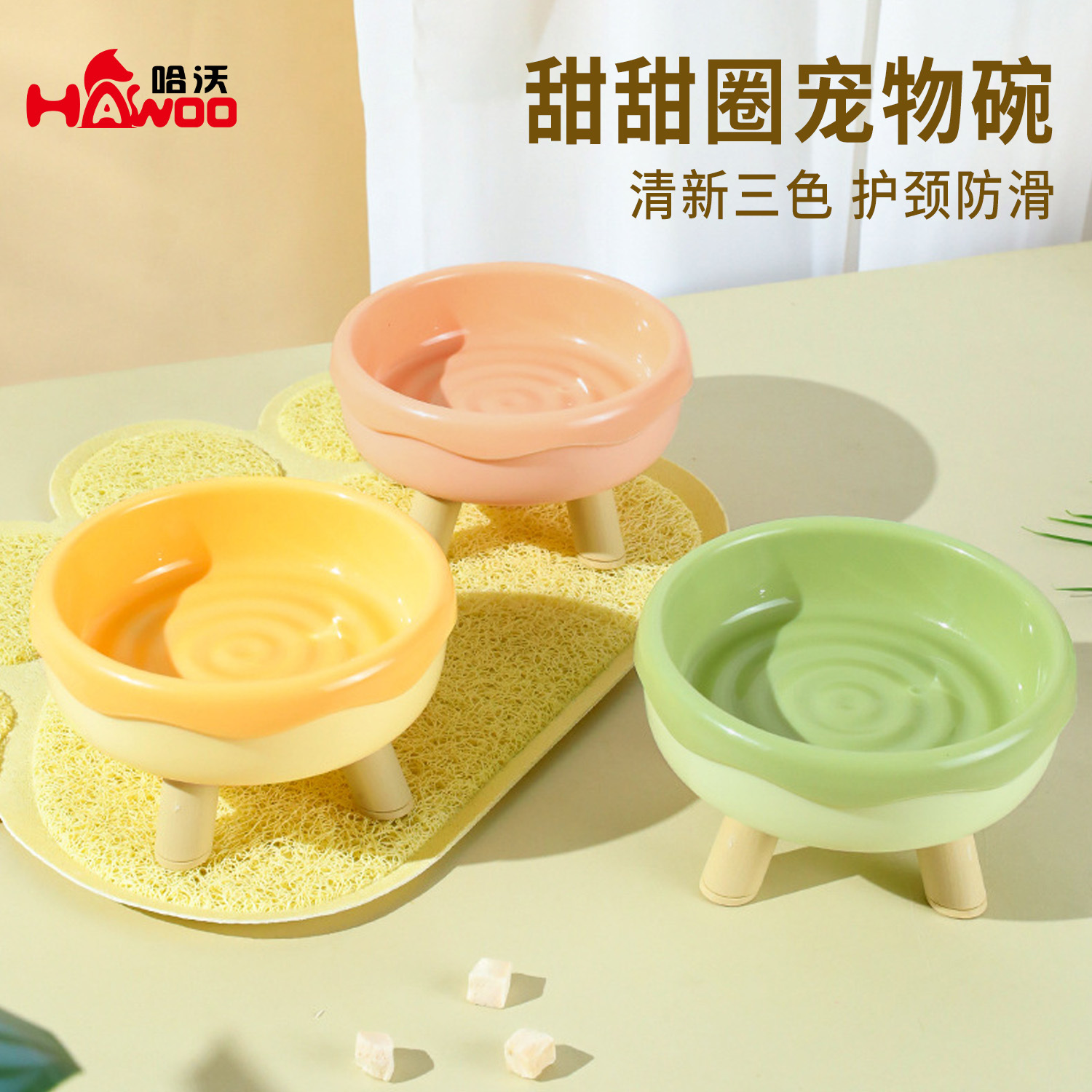 Mangkuk kucing donat, mangkuk makanan kucing anti ketukan mangkuk minum pelindung tulang belakang anjing mangkuk makanan anjing perlengkapan hewan peliharaan