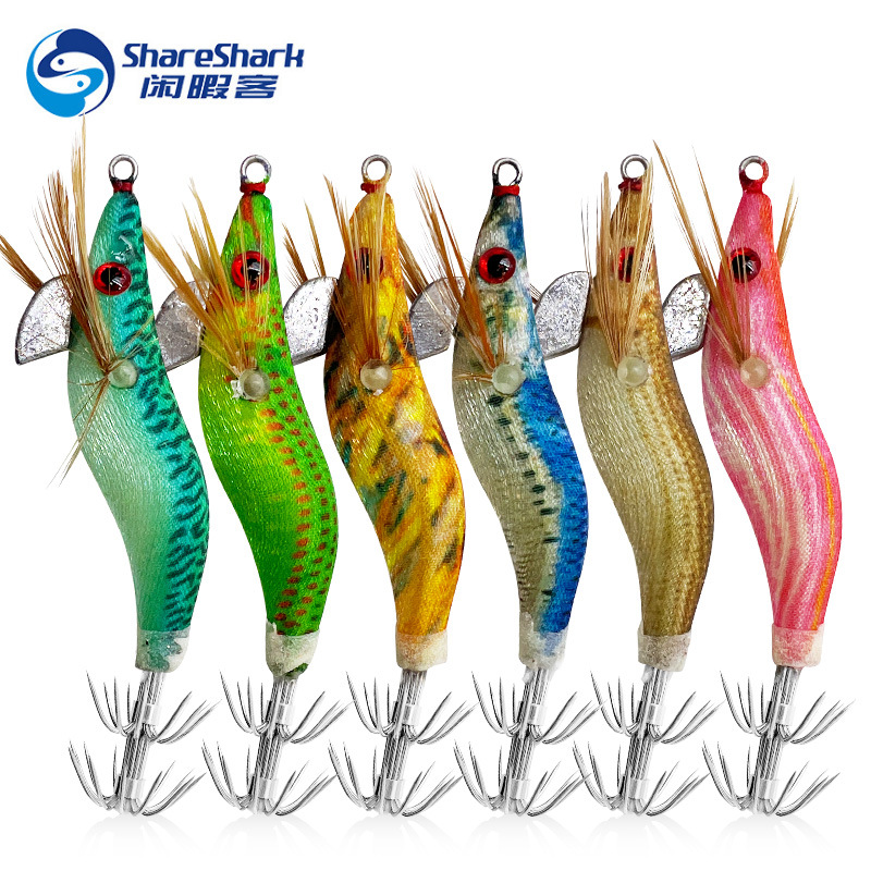Kait cumi-cumi udang kayu cahaya malam tamu santai 1.5 # dengan berat manik-manik cincin cumi-cumi tinta kait ikan udang kayu umpan ikan grosir