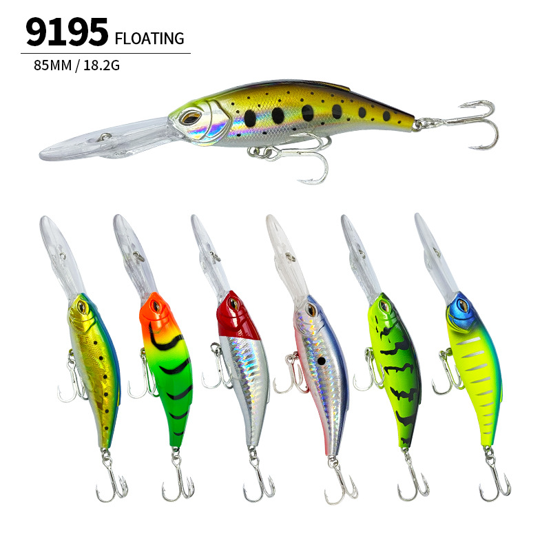 Umpan Mino Air Mengambang Model Baru 85mm/18.2g Lidah Panjang Mengangkat Mulut Putih Umpan Ikan Air Tawar 9195 Warna Baru