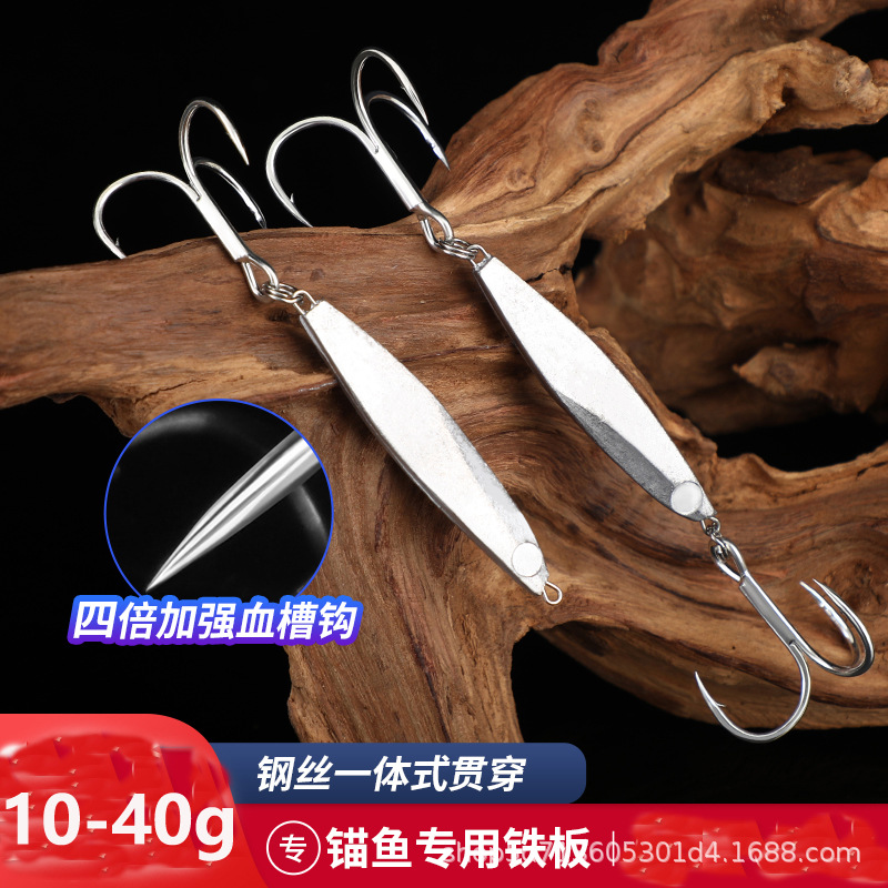 Umpan Luya plat besi Luya, tiga kait, darah diperkuat, umpan Luya, umpan panjang, jangkar umpan palsu, ikan jangkar, plat kosong khusus