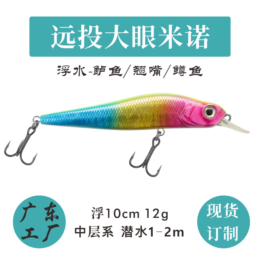 Umpan pancing palsu mengambang, 10cm/12G tembakan panjang 3D mata ikan air tawar umpan keras Mino Luya umpan pancing bass