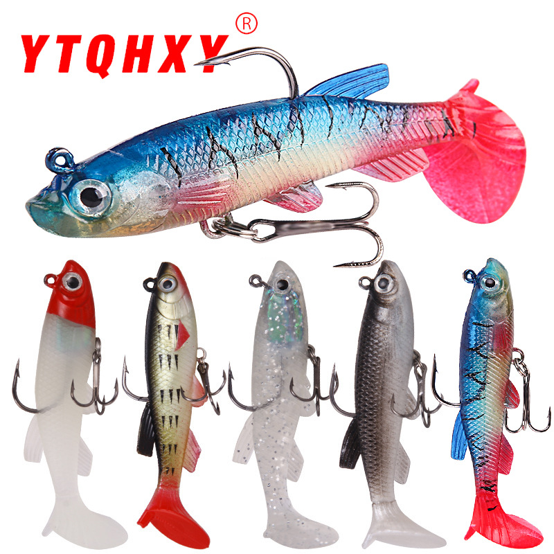 Aohu Luya umpan lembut fluktuasi ikan, pancing terbalik akar memancing kepala timbal mikro fluktuasi ikan T ekor lembut umpan memancing Luya umpan