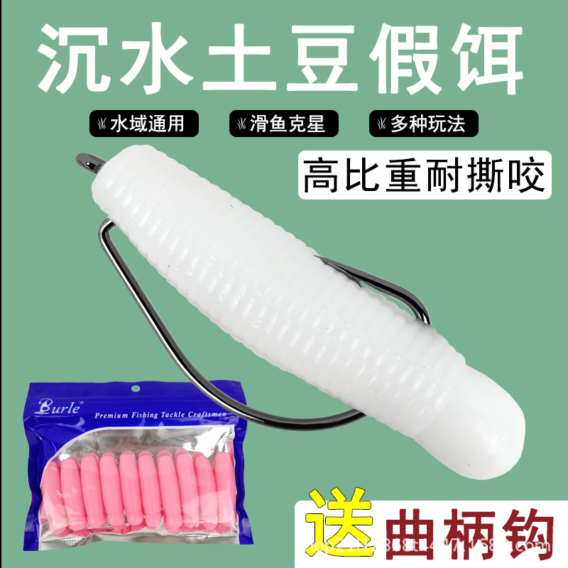 Umpan palsu tenggelam lambat, umpan palsu tenggelam hitam bass hitam ikan kentang lembut bercahaya cacing Luya Thunder frog kait engkol umpan palsu