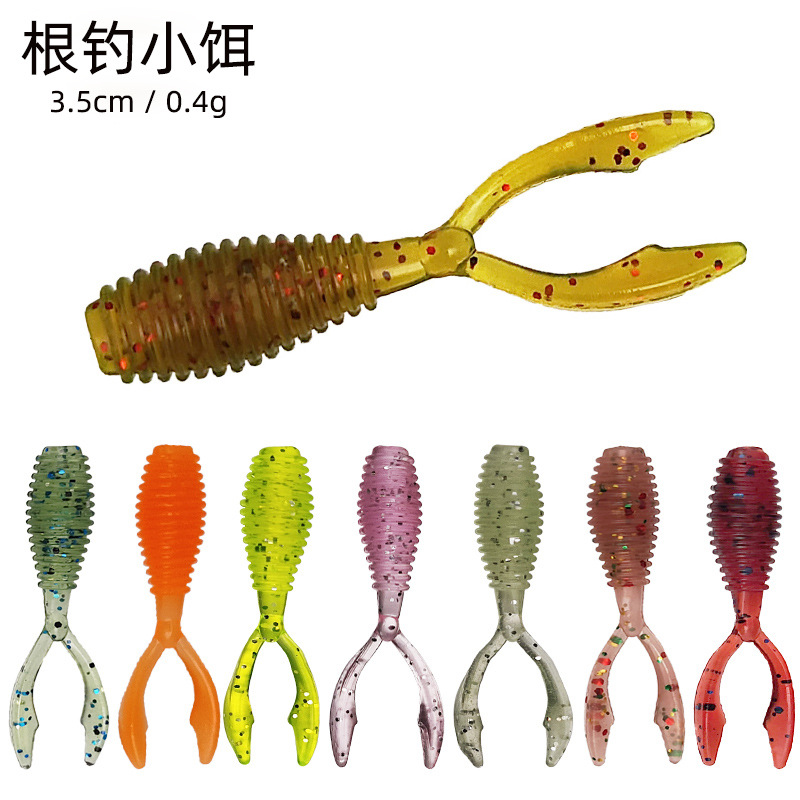 Miniatur memancing akar umpan pancing lembut umpan lembut cacing lembut umpan Luya ekor ganda mini umpan imitasi manik-manik bass ikan Mandarin kelompok memancing Texas