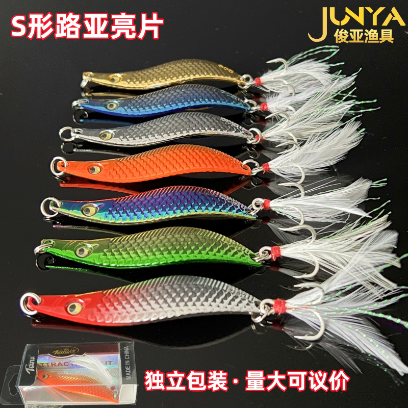 Umpan ikan berbentuk S, payet Luya ikan naga 7 warna pilihan kemasan independen umpan palsu umpan imitasi Luya grosir
