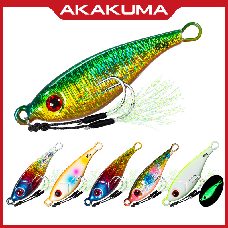 Tembakan panjang plat besi goyang lambat kepala besar bercahaya ikan kait ganda pancing laut lemparan umpan palsu Jalan umpan lempar lintas batas