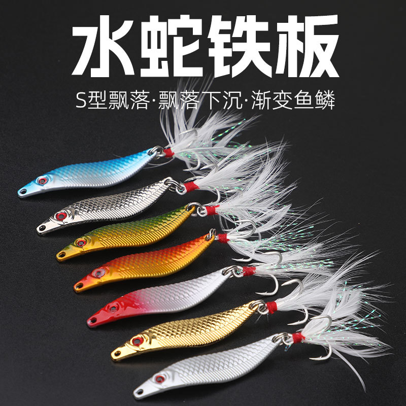 S型飘落铁板远投亮片路亚饵羽毛血槽钩鲈鱼翘嘴鳜鱼鳡鱼批发假饵