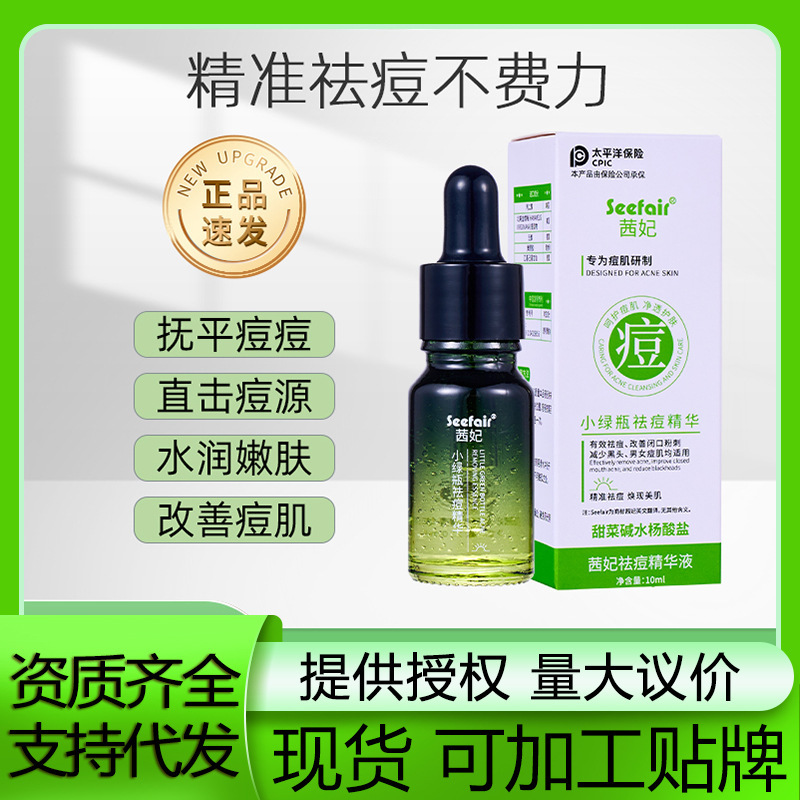 Qianfei Serum Jerawat Betina Salisilat Botol Hijau Kecil Essence untuk Meningkatkan Jerawat dan Jerawat