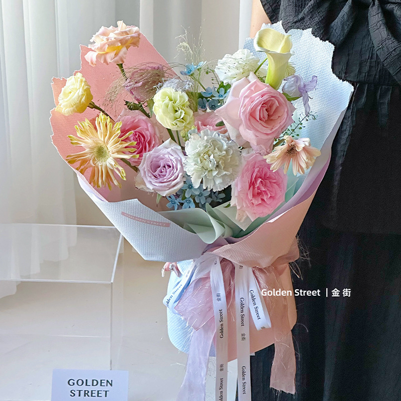 Kertas pembungkus bunga grosir warna solid asli serat kasar kertas pembungkus bunga grosir buket kertas pembungkus kertas linen