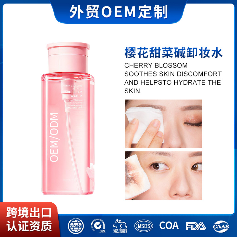 Custom Crossborder Tk Model Ledak Sakura Bit Alkali Pembersih Makeup dalam Bahasa Inggris Minyak Pori-pori Pembersih Lembut Air Makeup