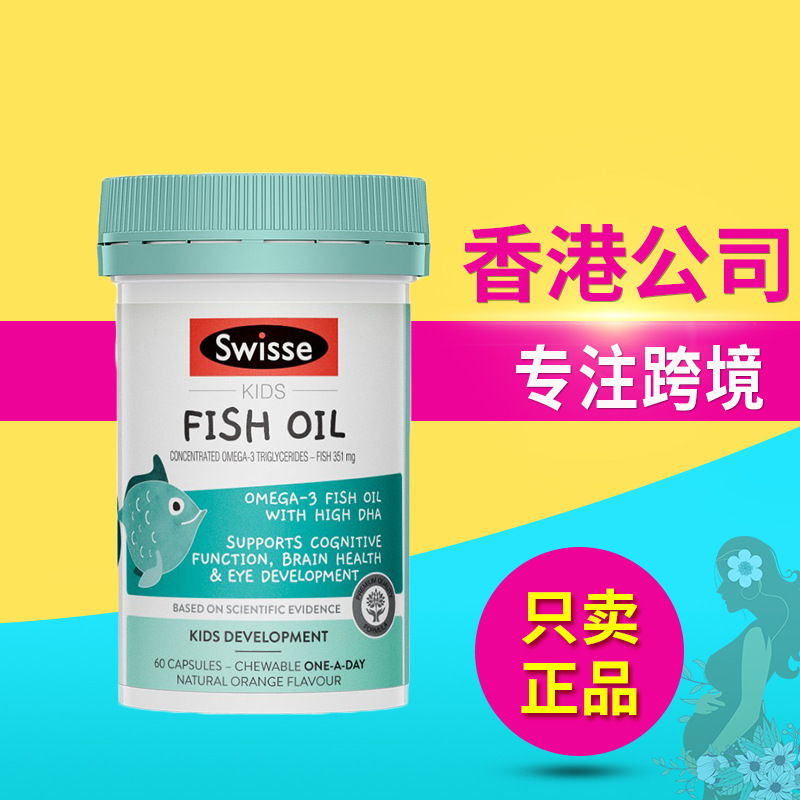 Australia swi-sse kapsul minyak ikan DHA kesehatan anak-anak 60 tablet/botol rasa oranye tidak berbau untuk 2-12 tahun