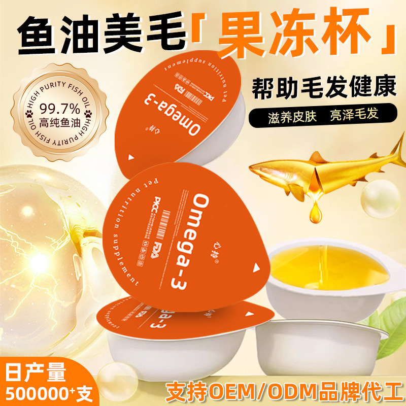 Cangkir Jelly Minyak Ikan Hewan Peliharaan OEM/ODM Merek Pemualai Kucing Anjing Universal Minyak Ikan Laut Dalam Anjing Rambut Cerah Dikurangi