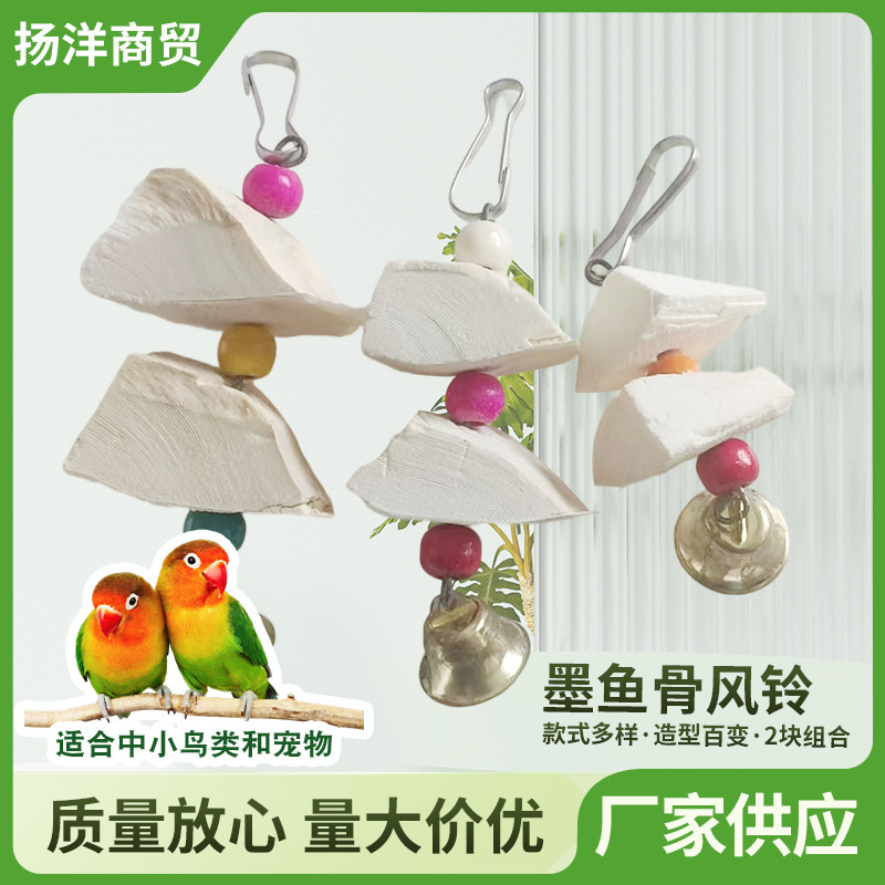 Lonceng angin tulang sotong ready stock model baru model burung beo gaya hitam peony molar merayap hewan peliharaan produsen mainan grosir