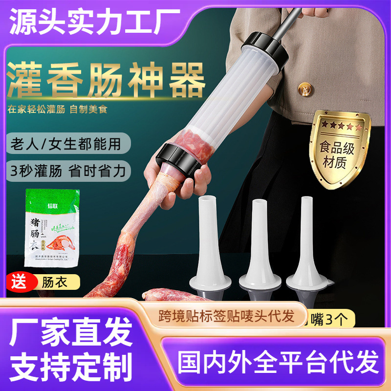 Alat pengisi lintas batas babi usus kecil, irigator sosis sosis sosis rumah tangga Dorong Tangan manual buatan sendiri
