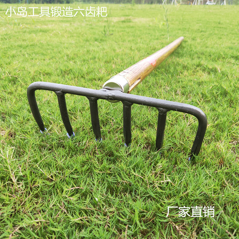 Semua baja pegangan kayu ditempa enam gigi garu kait cakar ditempa menyapu Taman longgar tanah cangkul alat pertanian berkebun