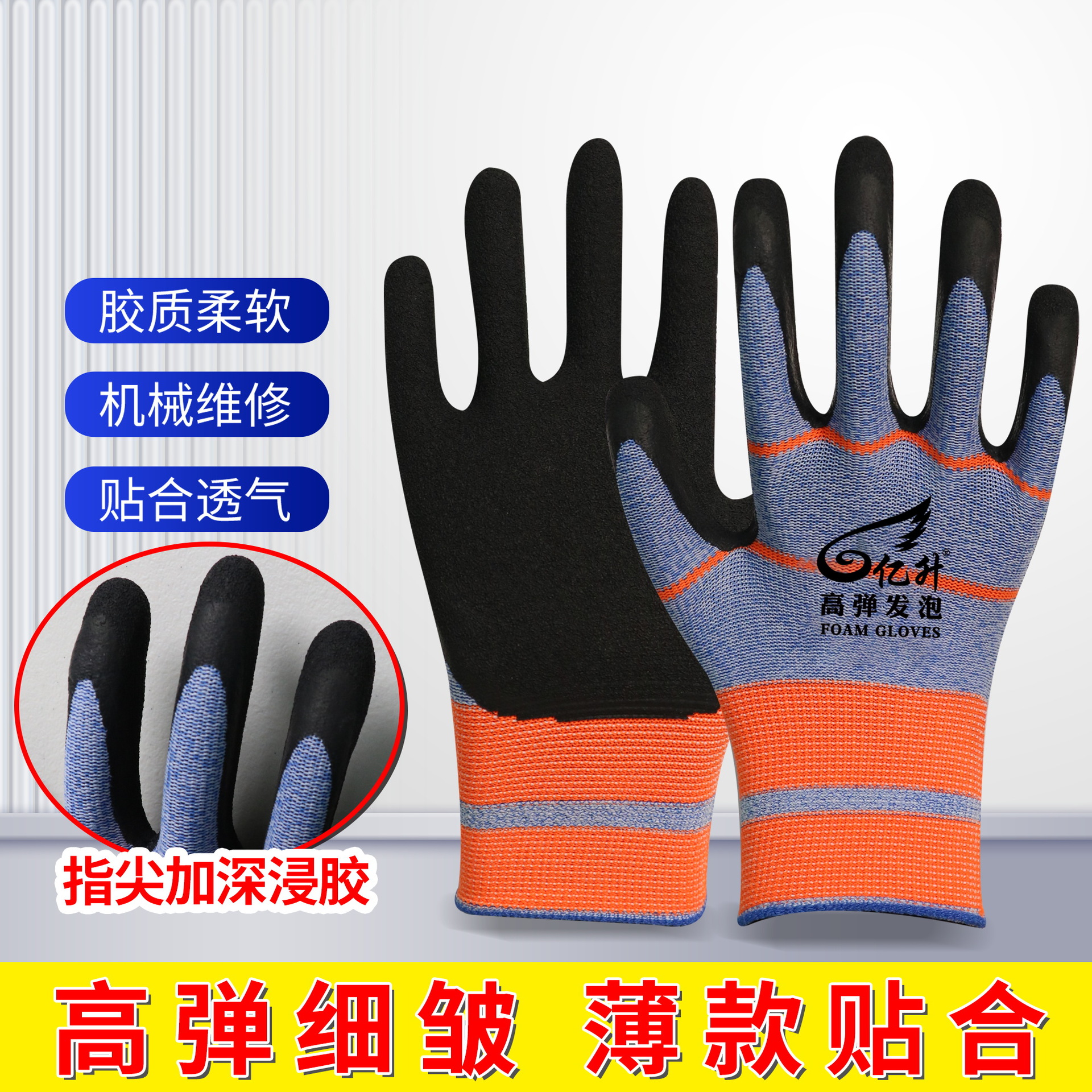 Yisheng sarung tangan busa King elastis tipis bersirkulasi antiselip sarung tangan pelindung kerja situs konstruksi besar elastis grosir