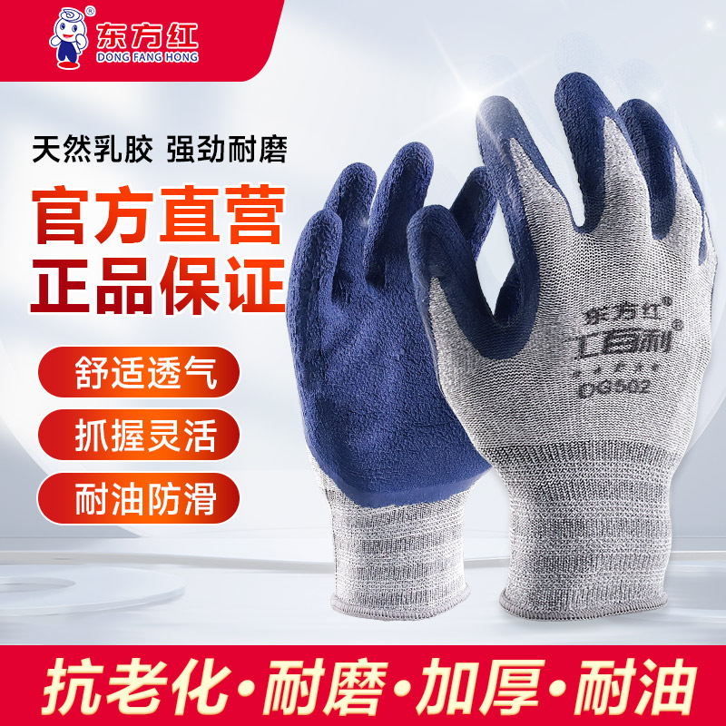 Sarung tangan karet merah Oriental, sarung tangan kerja lokasi konstruksi, lateks nitril antiselip tebal tahan aus