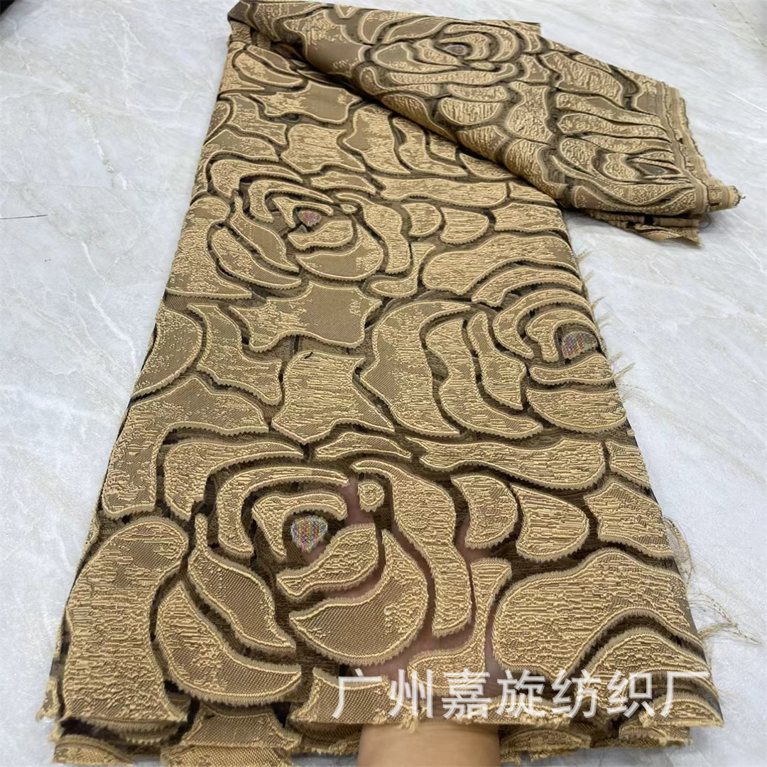 Kain jacquard kelopak mawar besar lebar penuh pakaian pertunjukan gaun musim semi dan musim panas kain bunga potong poliester Hanfu JX4075