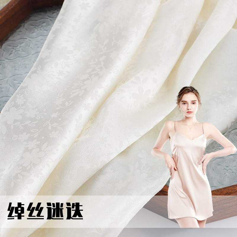 Kain Jacquard Elastis Sutra Imitasi Kain Pola Gelap Satin Bunga Kecil Cocok untuk Membuat Cheongsam Piyama Gaya Tiongkok Baru