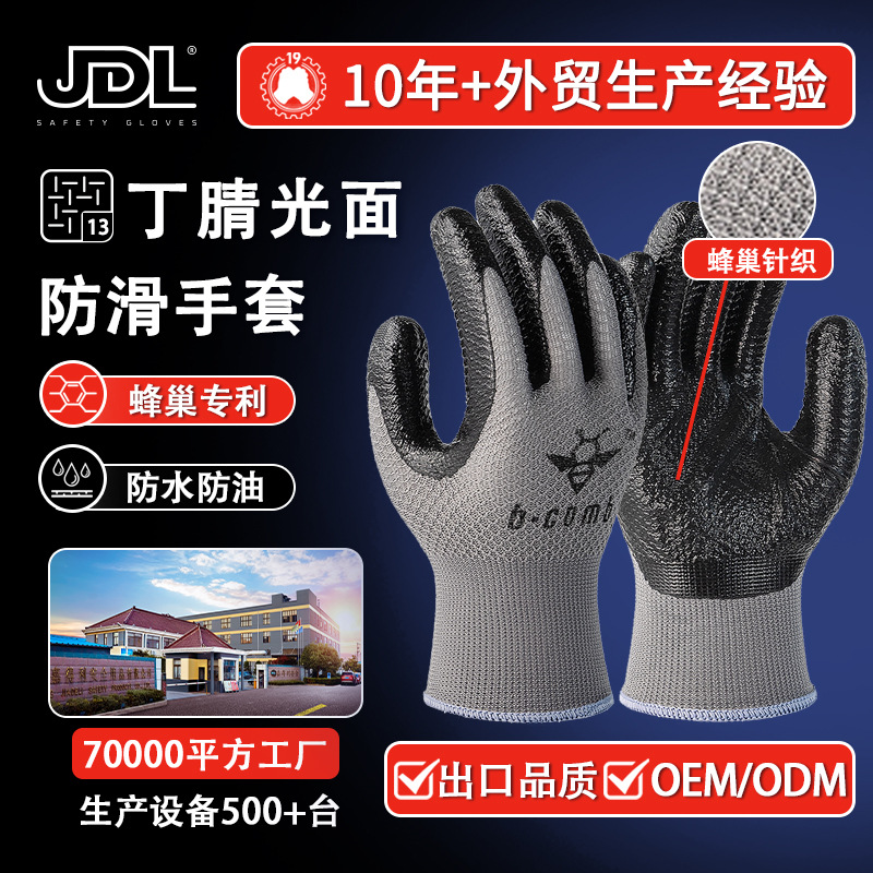 Sarung tangan Jiadeli N1852 nitril mengkilap, sarung tangan pelindung tempat kerja tahan minyak anti selip, sarung tangan perlindungan tenaga kerja berkebun