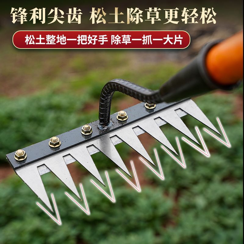 Penggaruk besi alat pertanian rumah tangga menanam sayuran longgar Tanah Datar enam-gigi garu delapan-gigi garu empat gigi