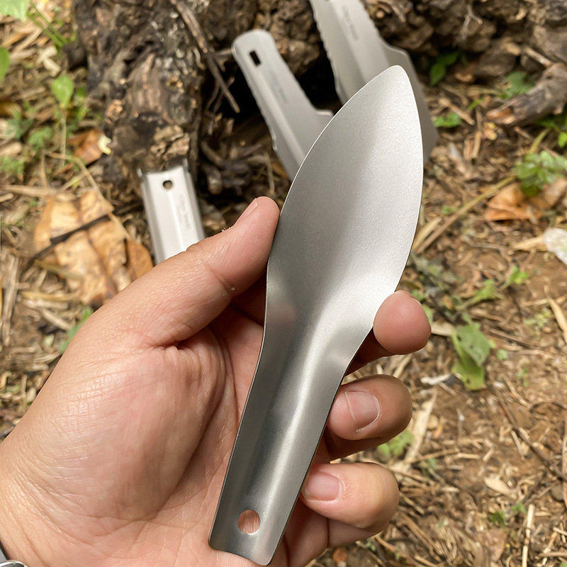 Sekop titanium murni luar ruangan multi-fungsi berkemah portabel sekop kotoran berkemah piknik alat titanium penggali pisau berkebun sekop