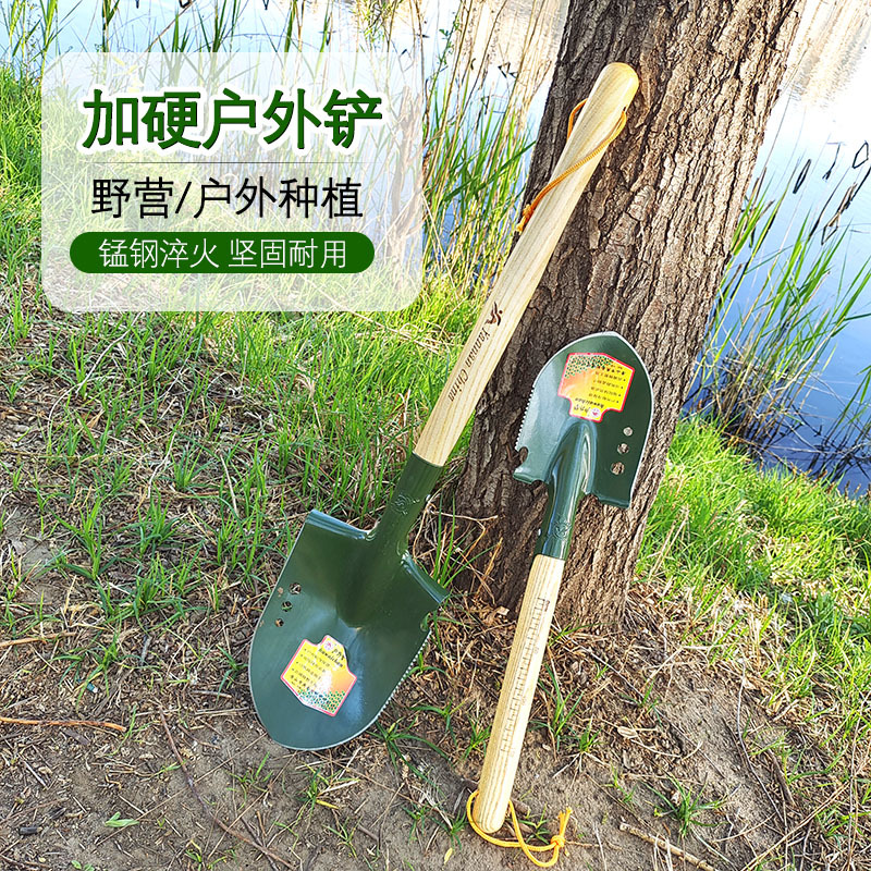 Sekop Berkebun Pertanian Luar Ruangan Sekop Insinyur Gagang Kayu Kadar Sekop Tentara Kecil Multi-Fungsi Memancing Berkemah Sekop Ekstra Tebal