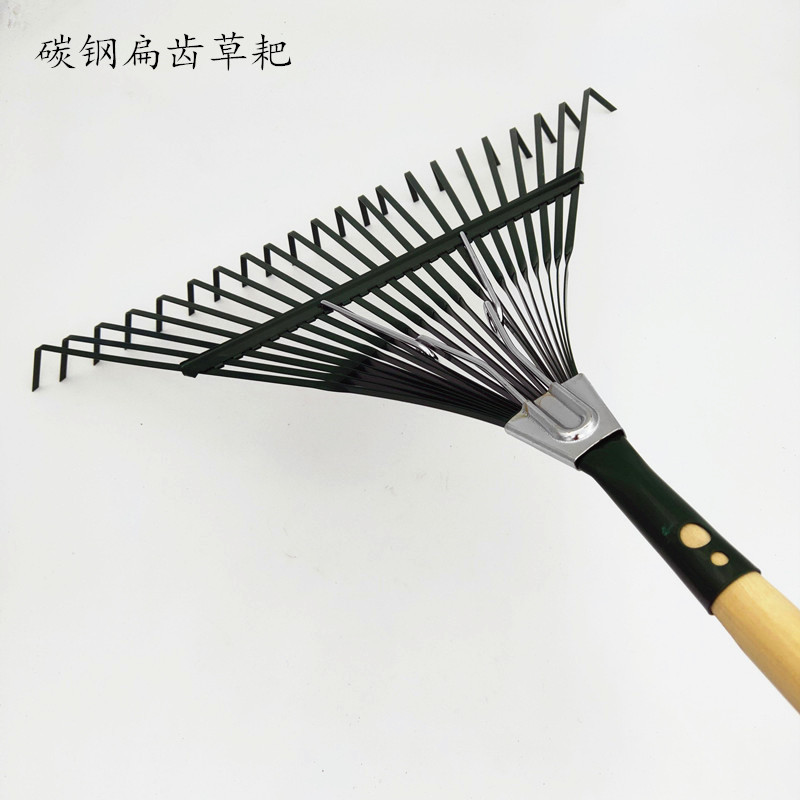 Alat pulau kecil pegangan kayu gigi datar 22 gigi rumput sapu sanitasi alat taman pembersihan rumput rumput sapu daun