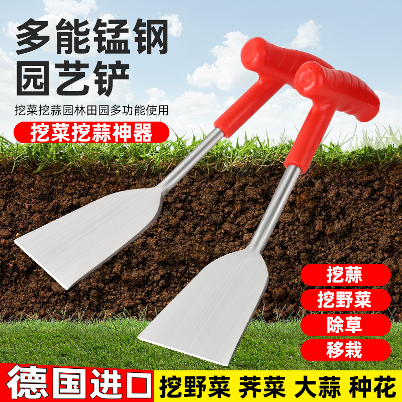 Pabrik grosir sekop bawang putih baja tahan karat berkebun menanam dan penyiangan alat luar ruangan menggali dan menggali sayuran liar artefak kecil sekop
