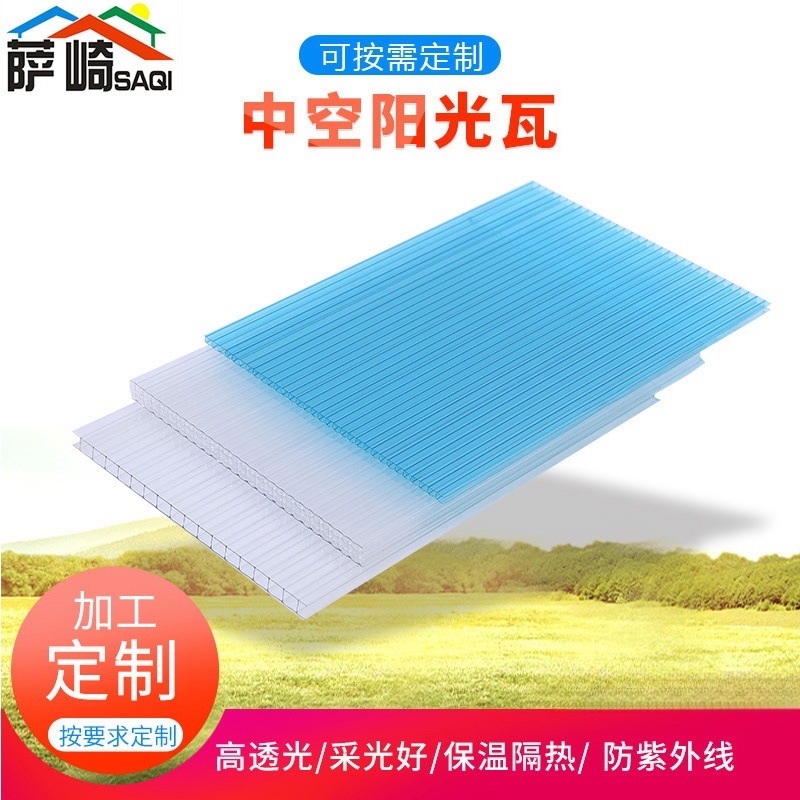 Kanopi PC Sunshine papan disesuaikan transparan dua lapisan empat lapis berongga kerai rumah kaca teknik pencahayaan ubin produsen