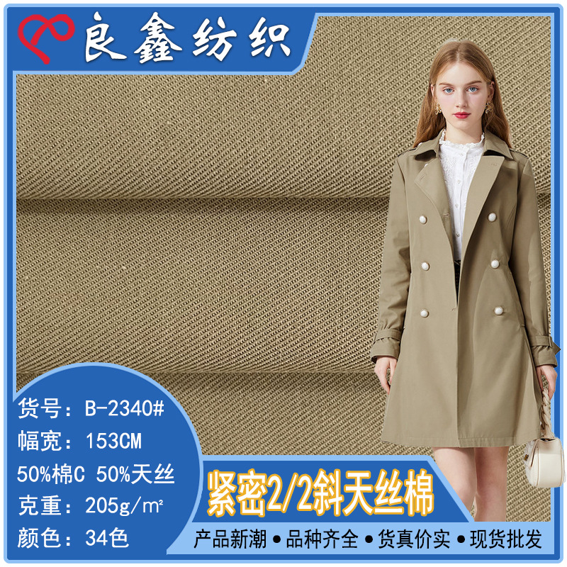 2/2 ketat katun Tencel miring 205g kain mantel trench campuran kain kasual parka musim gugur dan musim dingin