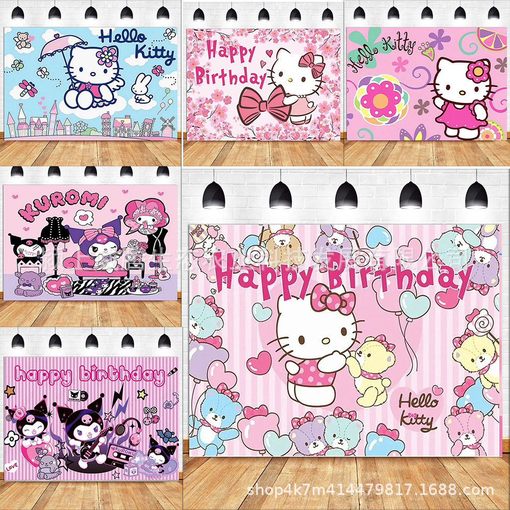 Kain Latar Belakang Sanrio Perdagangan Luar Negeri Lintas Batas Produk Pesta Ulang Tahun Kartun Anjing Kuromi Yugui Kain Gantung Spanduk Dekorasi