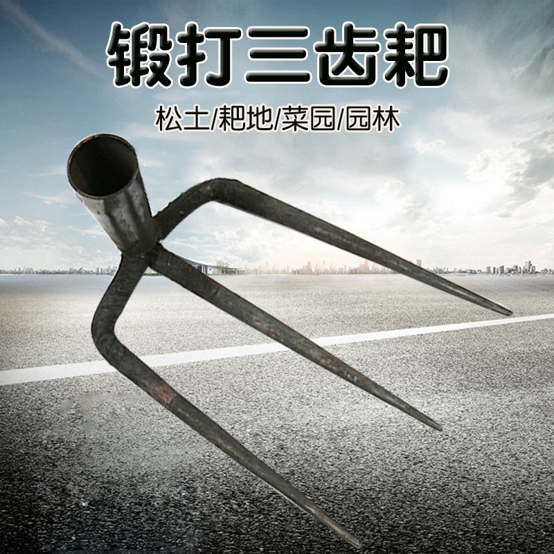 Alat pertanian semprong tiga gigi, penggaruk longgar Tanah tiga gigi, alat berkebun berkebun, penggaruk sayuran taman besar