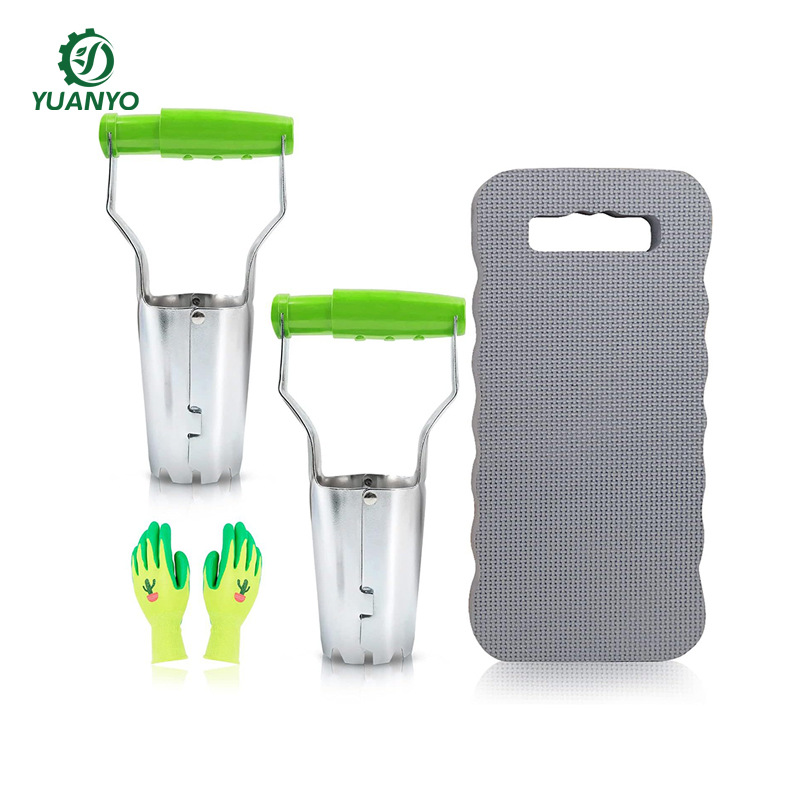 Setelan shifter bibit 4 potong baja tahan karat, alat berkebun bantalan lutut gagang kayu Pertanian Taman