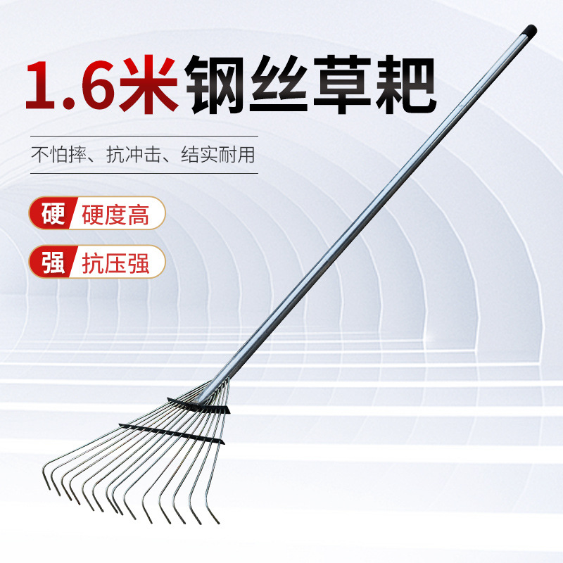14 gigi kawat kuning sapu Las 1.5 m gagang pipa baja besi cor kawat besi gugur penggaruk taman pembersih rumput alat pertanian