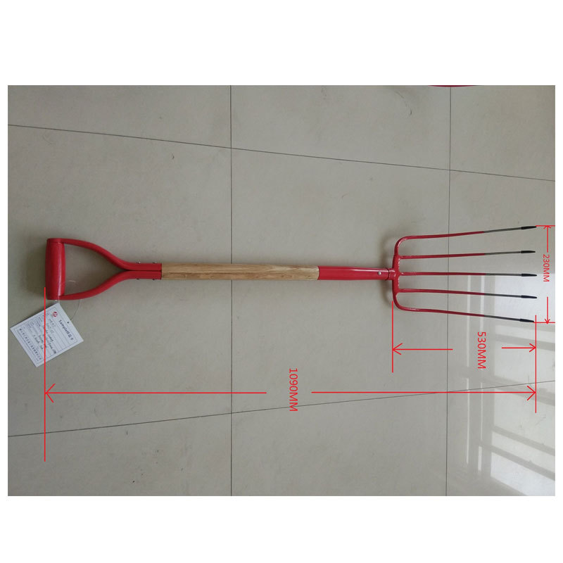 Alat kebun berkebun, alat berkebun pegangan kayu baja karbon empat gigi garu pegangan panjang