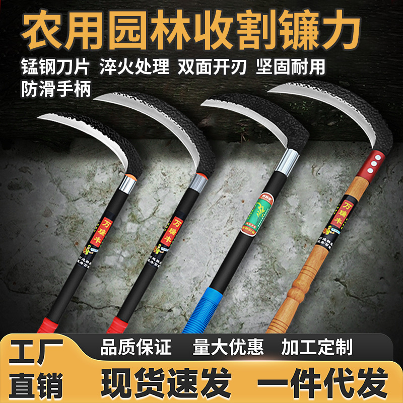 Alat pemotong rumput sabit luar ruangan alat penyiangan pancing sirkuit terbuka Panen jagung khusus all-steel kuncup bulan pegangan panjang