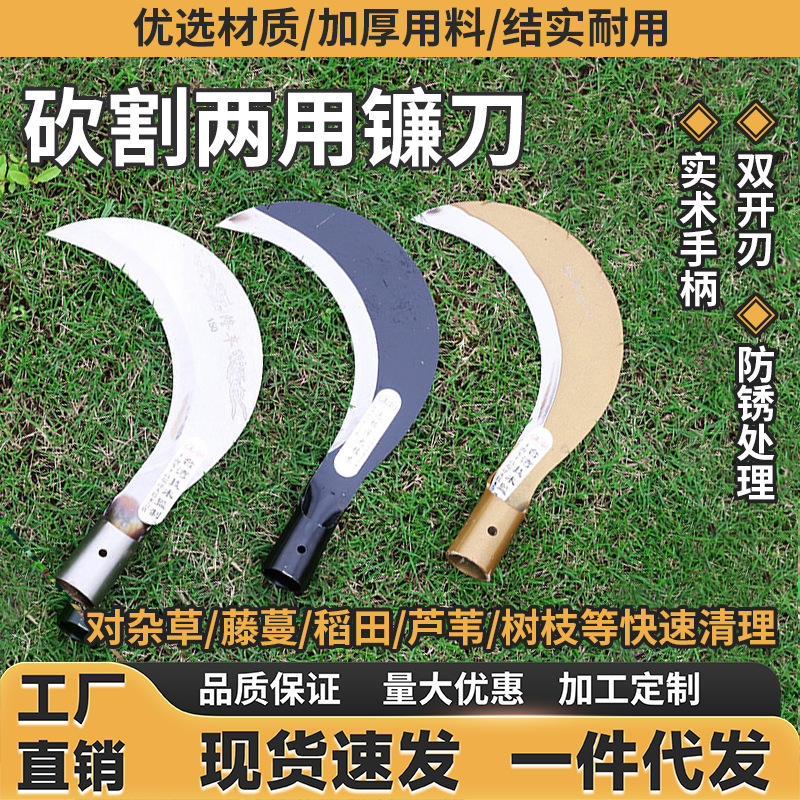 Alat pemotong sabit pertanian baja mangan alat penyiangan luar ruangan rumah tangga pabrik sabit khusus Panen jagung pisau melengkung
