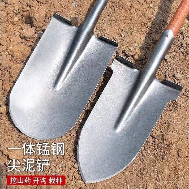 Sekop lancip luar ruangan menggali alat berkebun sekop baja sekop baja semua baja menebal besar pegangan kayu baja mangan
