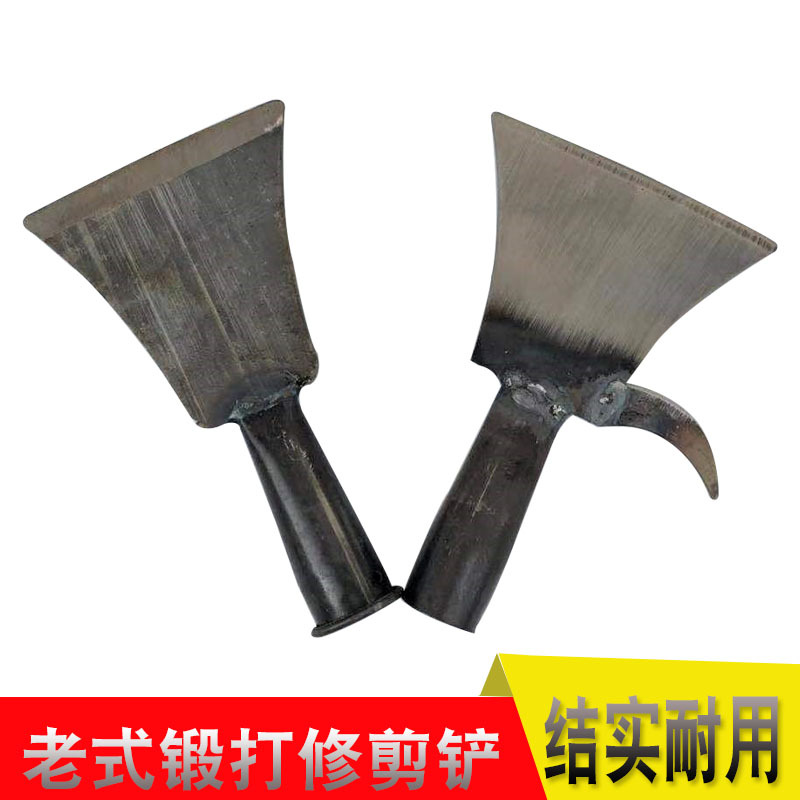 Alat pertanian multi-spesifikasi pohon tempa buatan sekop pelat baja bulan sabit dengan telinga pelat kepala datar pohon sekop sekop pemangkasan