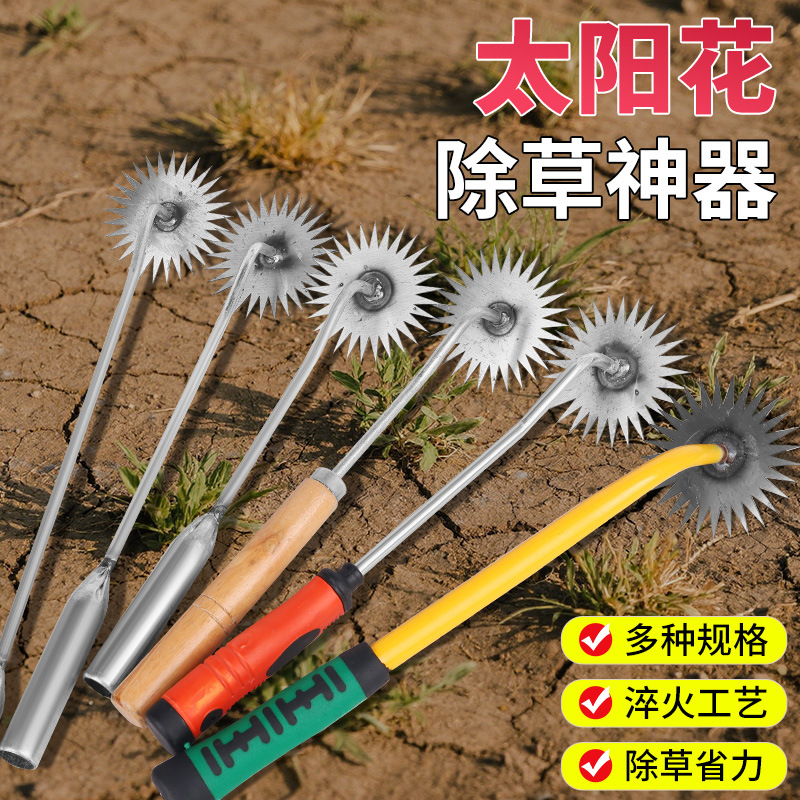 Alat Penyeterai Bunga Matahari Alat Pertanian Pegangan Kayu Besar Stainless Steel Galvanis Taman Penyeterai Bunga Matahari Alat Penyeterai Rumput